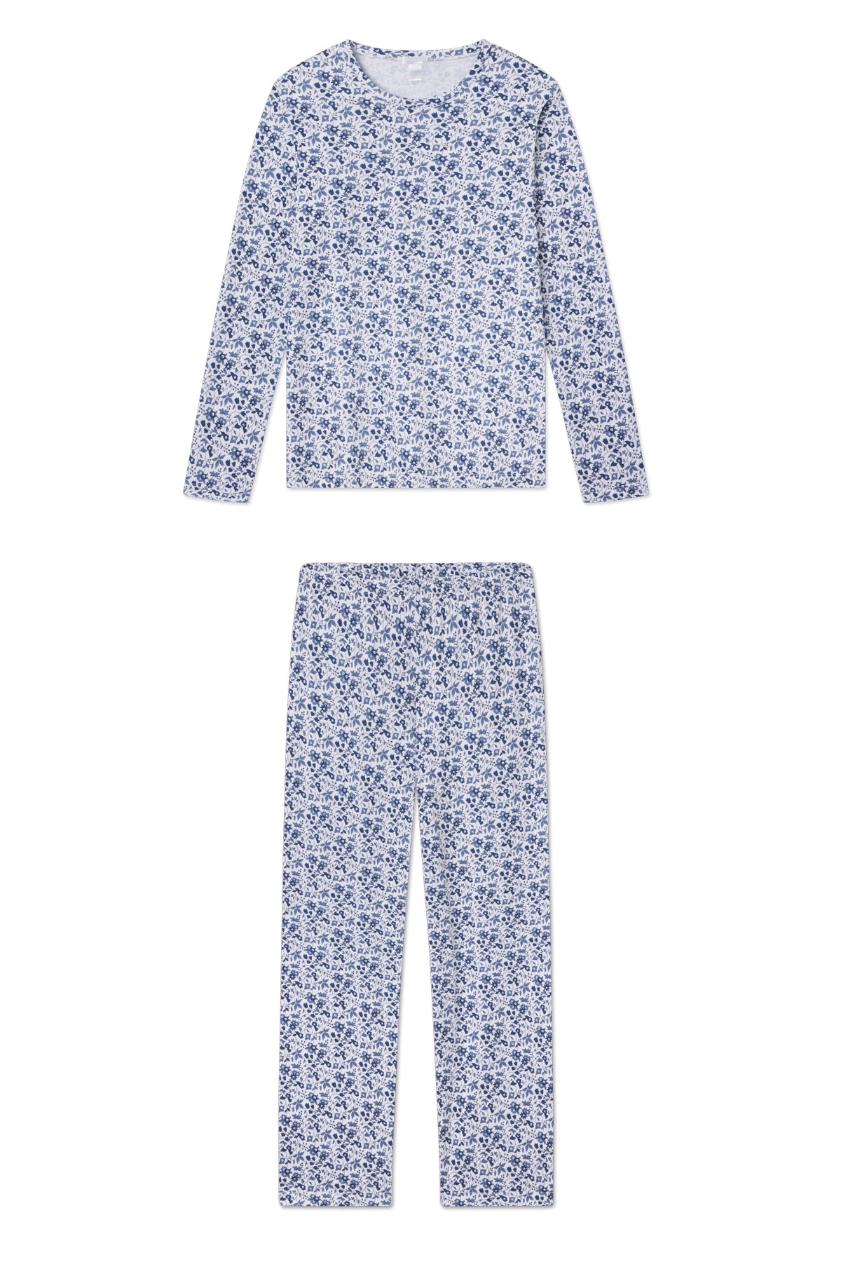The Pima Crew Long-Long Set in Sea Depth Garden Floral, a lively floral pattern in shades of deep indigo, features a can’t-go-wrong long sleeve crewneck and pants with straight hems throughout. It’s easy to embrace this understated pajama style, previously known as our Weekend Set. Go ahead and join the Crew. Made from 100% Pima cotton.