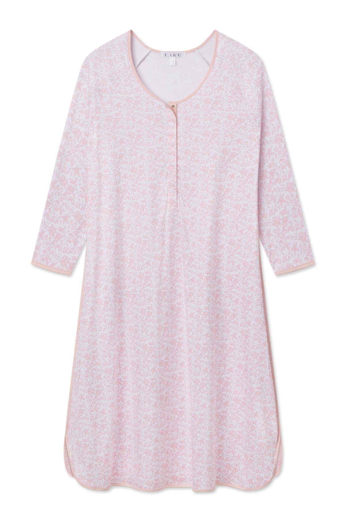 Our new, redesigned maternity styles make the waiting game more comfortable. The Maternity Pima Classic Long-Sleeve Nightgown in English Rose Garden Floral, a lively floral in shades of pink, features a scoop neck top with a hidden snap placket for nursing or pumping, long raglan sleeves, and room for a bump. This soft, breathable maternity nightgown has a curved hem and contrast piping throughout. Made from 100% Pima cotton.