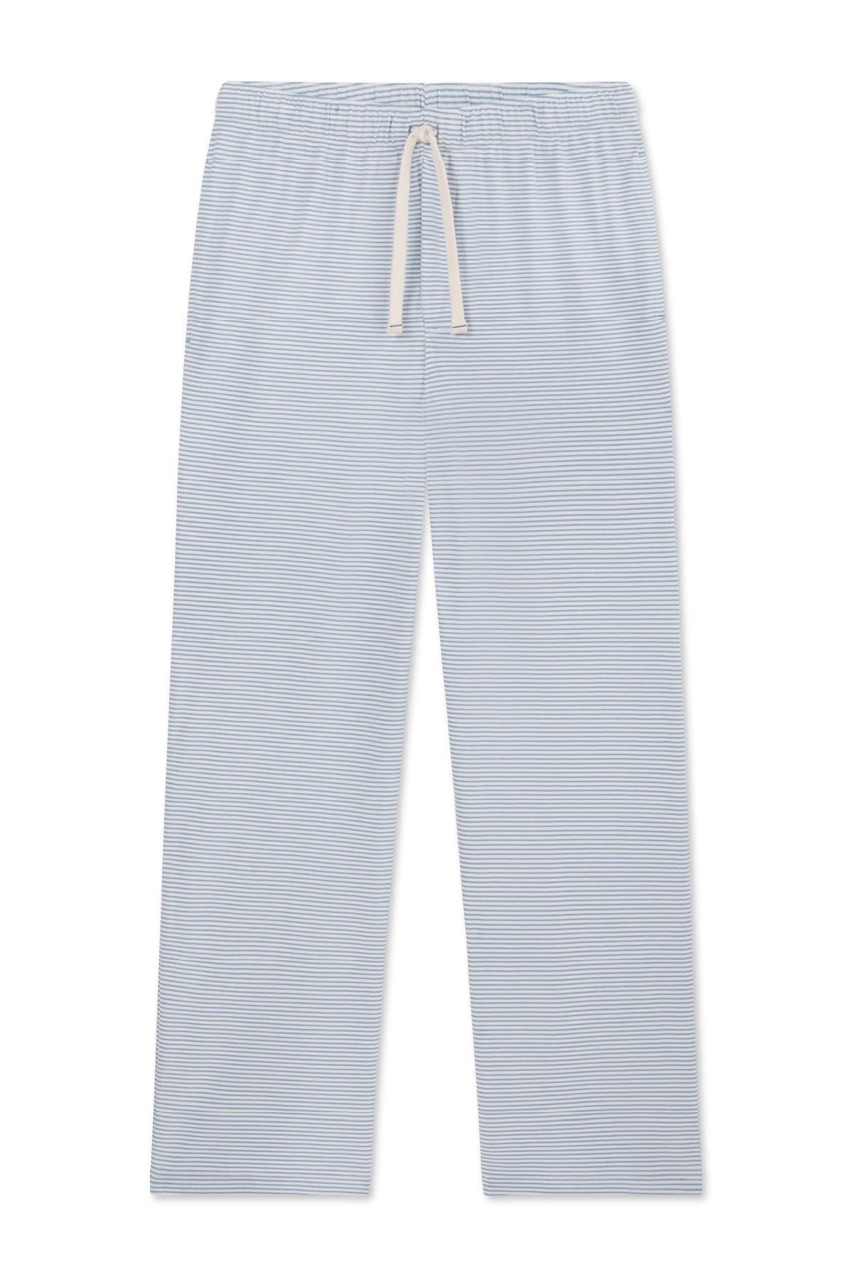 The Men’s Pima Sleep Pants in Anchor Blue Bar Stripe are a straight leg, full-length pant featuring an elastic waistband, functional drawstring, faux fly, and on-seam pockets. Pair with a coordinating Pima tee for ultimate comfort. Made from 100% Pima cotton.