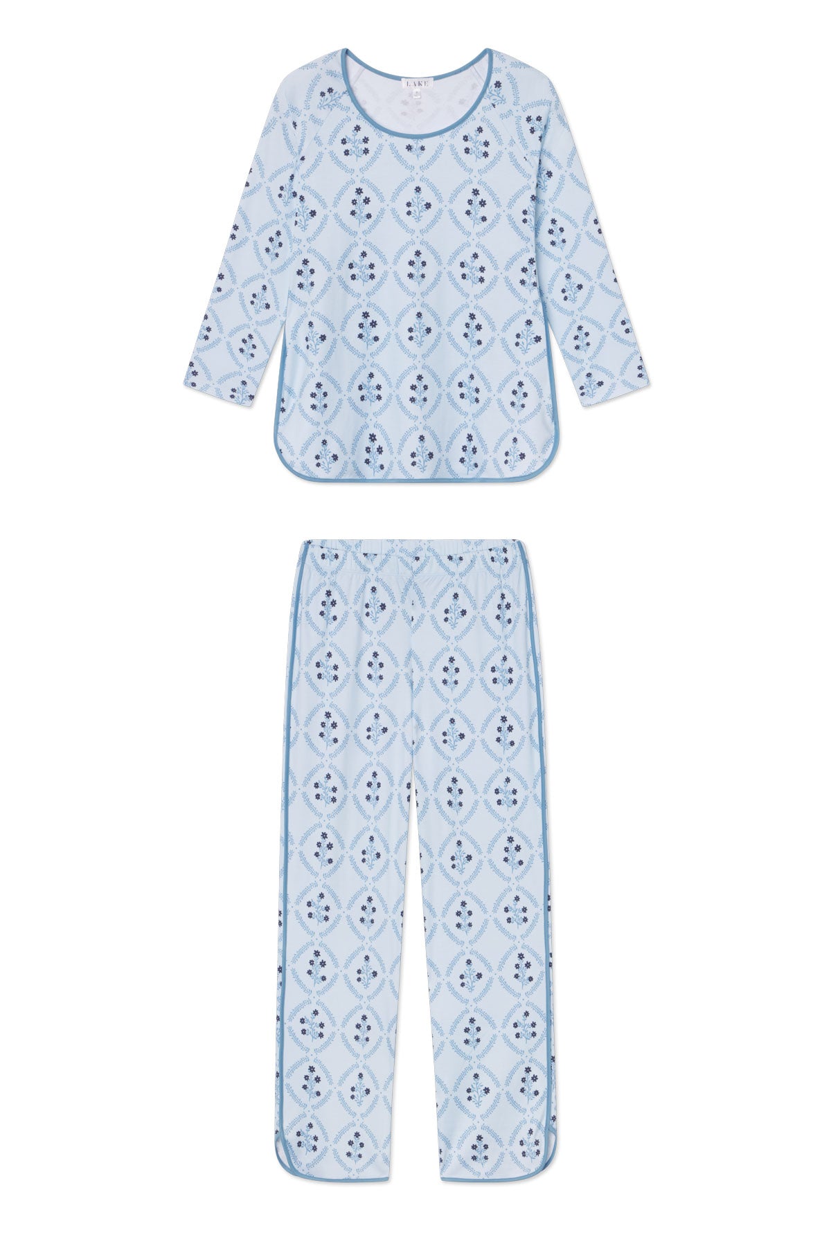11 Pima Cotton Long Sleeve Matching Set in Serene Blue Wreath Print
