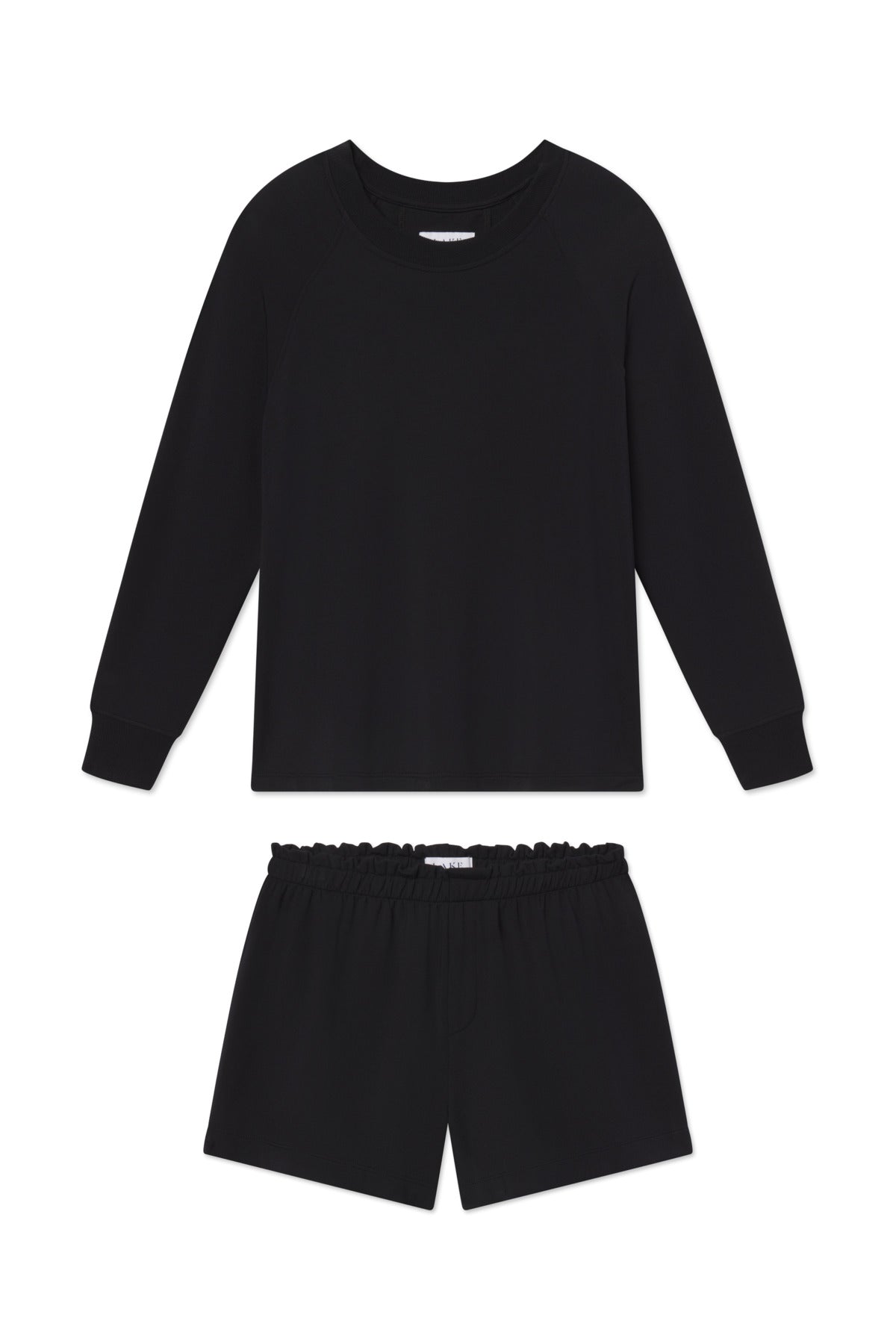 The Relax Shorts Set in Black features a drapey, raglan-style sweatshirt and pull-on shorts with a roomy leg opening and faux fly front. This easygoing lounge set is our favorite to put on at the end of the day. Made of 95% modal, 5% spandex.